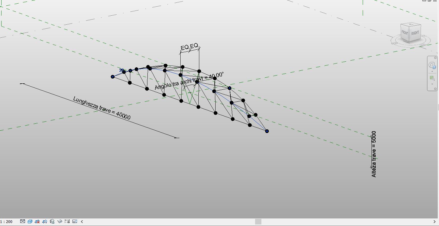 Lascia all’utente la possibilità di interagire e modificare i parametri di lunghezza, altezza e angolo della trave dall’interfaccia Revit, rendendolo più fruibile e intuitivo nel posizionamento, mentre all’utente esperto dynamo permette la gestione degli elementi secondari. Questi ultimi elementi, se parametrizzati opportunamente con formule, possono rendere lo script eseguibile direttamente dall’utente Revit.