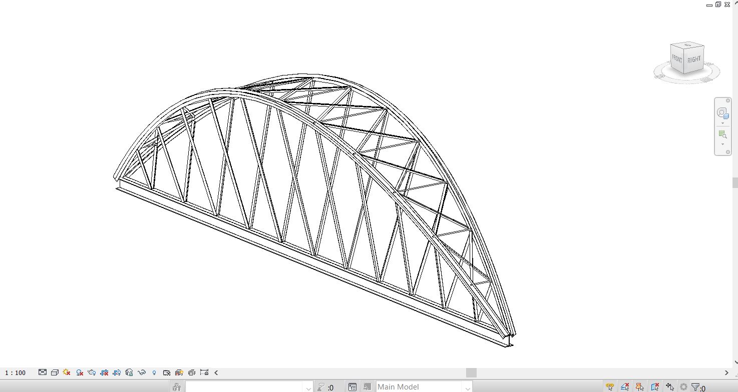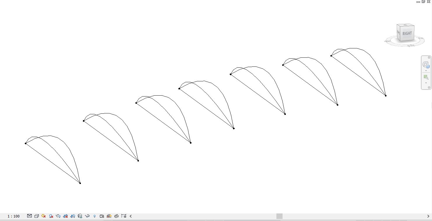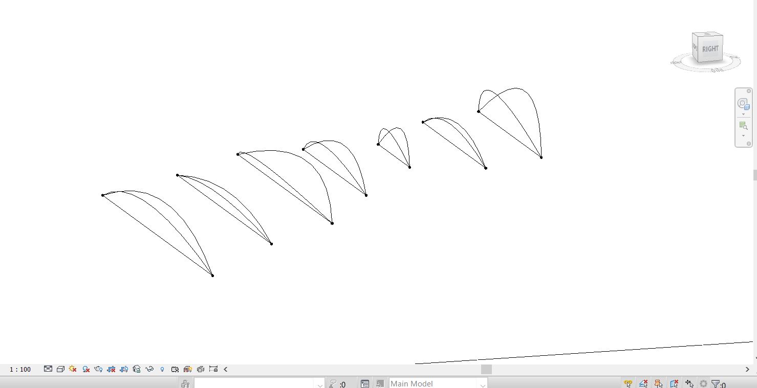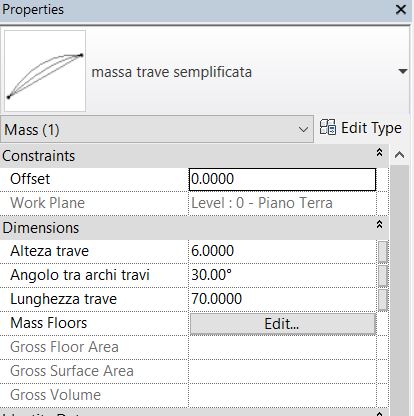 Il terzo metodo è un ibrido tra i primi due: Ho cominciato dalla modellazione di una massa molto semplificata rispetto alla prima, e limitata a soltanto gli assi strutturali principali, parametrizzando la lunghezza, l’altezza e l’angolo tra i due archi strutturali.