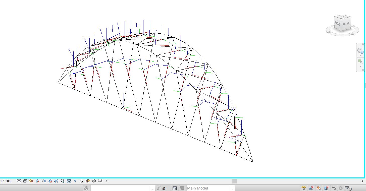 A questi elementi principali, lo script aggiunge gli elementi secondari, lavorando con divisione delle curve in parti e collegando i punti con linee, infine associa ad essi la sezione corretta per ogni linea disegnata. Le proprietà analitiche strutturali risultano mantenute. Le immagini seguenti sono ottenute dopo aver posizionato le masse con i parametri desiderati e aver lanciato lo script: