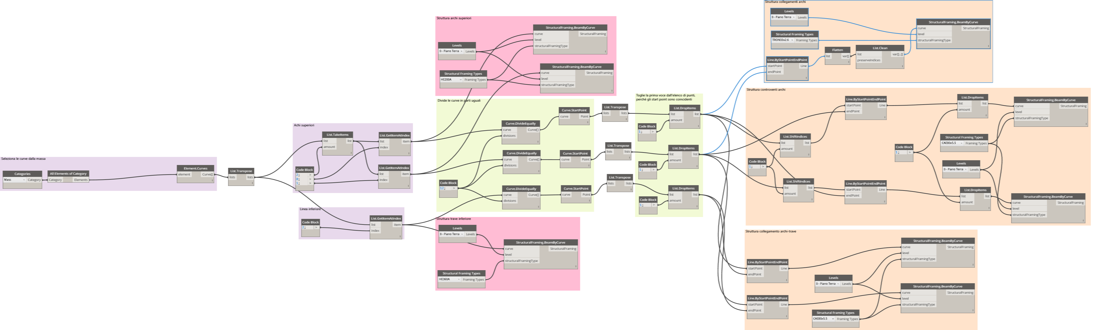 - 3-Creazione dei nodi strutturali e dei collegamenti secondari sotto forma di funzione (Gruppi gialli)